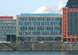 Geschosshöhen sind unwirtschaftlich - zusammen mit einer neuen raumhohen Glasfassade zu Chancen für einen neuen attraktiven Arbeitsraum direkt am Rhein. Im Innern sollten die bestehenden Gebäudeteile, insbesondere die mächtige Tragstruktur, so behandelt werden dass der schroffe Charakter des Gebäudes als ehemaliges Hafenlager erhalten bleibt. Im Gegensatz dazu sollten die neu hinzukommenden Elemente wie die Fassade und der Kern-bereich edel und farblich herausgearbeitet werden. In diesem kontrastreichen Spannungsfeld sollten mit spar-samen Mitteln flexible moderne Bürolofts entstehen.