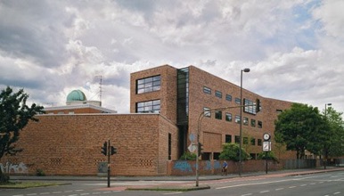 Bei der Lösung der Bauaufgabe standen neben der städtebaulichen und logistischen Lösung auch die zu erzielende Ausstrahlung des Gebäudes und Innenraums im Vordergrund. Die Außenwände sind mit einer Schale handgestrichener Ziegel verkleidet. Holz, Sichtbeton und Ziegel bestimmen den Innenraum. Zum Schulkomplex wurde dem Gebäudeensemble an der Palanterstraße eine Doppelturnhalle hinzugefügt. Auch hier konnte eine erhebliche städtebauliche Verbesserung erreicht werden. Bei den gestapelten Turnhallen konnte der gleiche architektonische Gusto, der auf den Abbildungen angedeutet ist, umgesetzt werden.